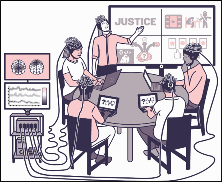 fNIRS (functional near-infrared spectroscopy) is a relatively new and flexible brain imaging technique – it is one particularly well-suited for group testing due to its non-invasive nature, allowing simultaneous data collection from multiple participants - without significant discomfort or interference. Its tolerance to movements makes fNIRS the imaging method of choice when conducting the research proposed here – investigation of individual cognitive processes in controlled group settings, while facilitating the examination of real-life interactions, and enabling the monitoring of brain activity during natural group tasks.